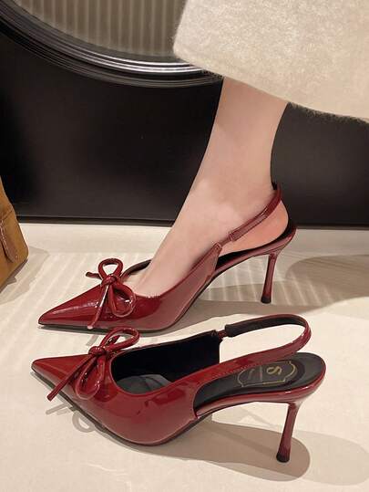 1 Pair Elegant Fashion Summer New Fairy-Style Casual Thin Heel Bow Decorated Wine Red High Heel Sandals - Burgundy - View 8