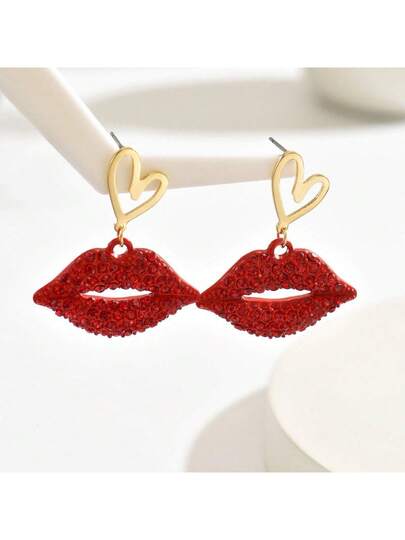 1 Pair Fashionable Carnival Red Lips Alloy Earrings, Suitable For Women's Holiday Wear - Red Lips Earrings - View 1