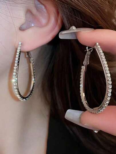 1 Pair Fashionable Minimalist Hollow Water Drop Hoop Earrings, Unique Design With Elevated Aesthetics, Suitable For Women's Daily And Holiday Wear - Silver - View 4