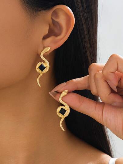 1 Pair Geometric Snake Wrap Gemstone Design Women Earrings, Fashionable & Elegant - Yellow Gold - View 1