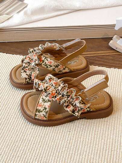 1 Pair Girls Hollow Breathable Princess Flat Sandals, Children Soft Bottom Non-Slip Student Campus Shoes, Infant Toddler Walking Shoes, Versatile Fashion Casual British Style Roman Sandals, Suitable For Summer Wear - Yellow - View 1