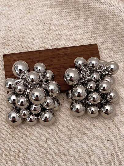 1 Pair Handmade Beaded Woven Stud Earrings For Women, Modern Style Fashion Accessories Earrings For Party And Evening - Silver - View 13