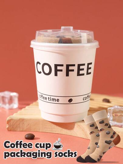 1 Pair New Interesting Multi-Color Coffee Mid-Calf Socks Gift Box, Spring/Summer Unisex Sports Socks, Imaginative Food-Inspired Creative Design, Knitted Fabric, Long & Thick Soft & Comfortable, Perfect Gift For Birthday, Valentine's Day, Easter, Festival, Carnival, Dates, Parties, Holidays, Unique Fashion Quirky Abstract Daily Casual Wear Socks, Popular Food-Themed Outfit, Suitable For All Seasons, Great Gift For Couples, Friends, Vacation, Outdoor Sports, Gym, Home, Office, Etc. - Mustard Yellow - View 1