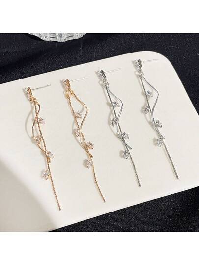 1 Pair Of Ins-Style Niche Design, Light Luxury, Simple, High-End And Versatile, Copper-Inlaid Zirconium Rotating Twist Decoration, Long Tassel Earrings, Earrings, Suitable For Daily Wear By Women, Engagement Wedding Dinner Accessories, Valentine's Day Gifts For Girlfriends - Tassel Earrings - View 1
