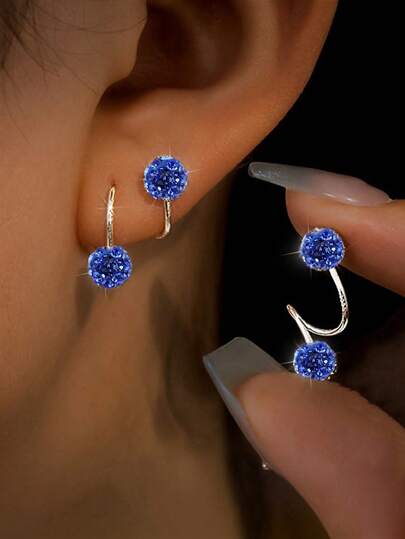 1 Pair Of Luxury Style Double Head Screw Lock Rhinestone Ball Earrings, Unique S-Shape Pierced Stud Earrings - Blue - View 1