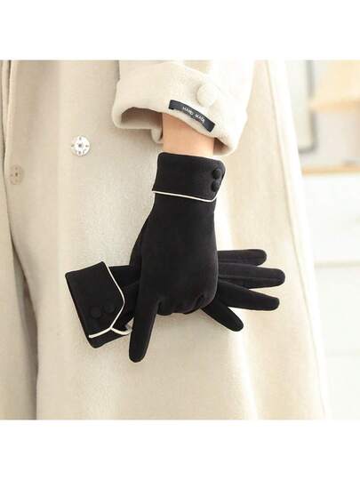 1 Pair Of Warm Suede Winter Gloves - With Touchscreen Lining And Fuzzy Design, Suitable For Outdoor Activities And Commuting, Essential Winter Wear, Warm And Comfortable Touchscreen Gloves Fall Clothes For Women - Red - View 1