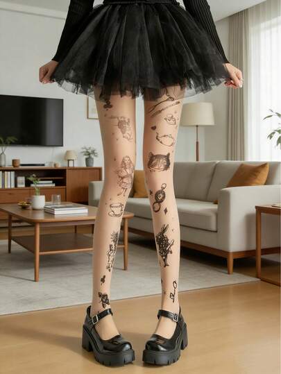 1 Pair Of Women's Rabbit, Teacup & Crown Print Pantyhose, Elegant, Beautiful, Sexy And Comfortable, Slimming, Snag-Resistant And Durable, Perfect For Various Festival And Daily Styling, Especially Ideal For Easter, Couple Dates, Daily Outings And Commuting - Available In Multiple Sizes - Multicolor - View 6