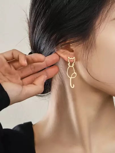 1 Pair Personalized Gold Cute Cat Simple Bright Color Girls Fashion Earrings Essential For Traveling And Playing - Yellow Gold - View 1