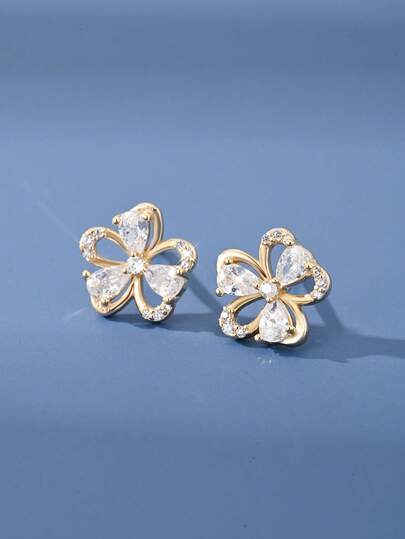 1 Pair S925 Sterling Silver Minimalist Elegant Hollow 5-Petal Flower Stud Earrings For Women - one-size - View 1
