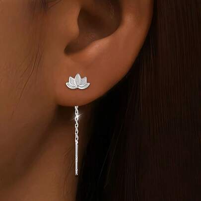 1 Pair/Set Women's Fashion Dangle Earrings, Spring/Summer Lotus Flower Tassel S925 Sterling Silver Hypoallergenic Earrings, Weight 1.1g, Suitable For Daily Wear/Spring & Summer/Graduation Gift/Holiday Celebration - Lotus Earring - View 1