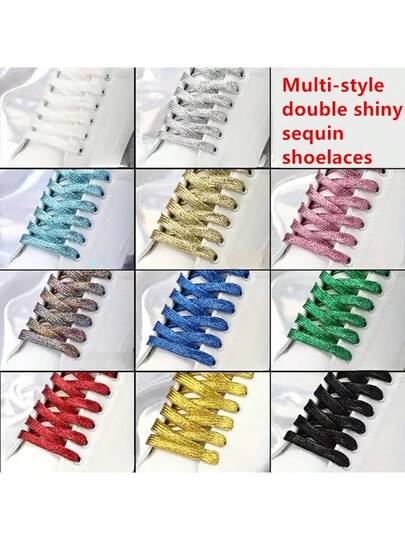 1 Pair Shiny Sequin Shoelaces - Fashionable Metallic Silver And Gold - Durable Flat Shoelaces, Suitable For Sneakers And Running Shoes - Multicolor - View 19