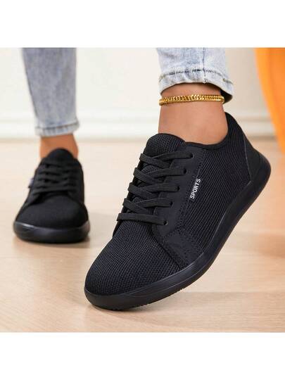 1 Pair Solid Color Flat Fabric Shoes, Unisex, Suitable For Office Wear, All Seasons - Black - View 1