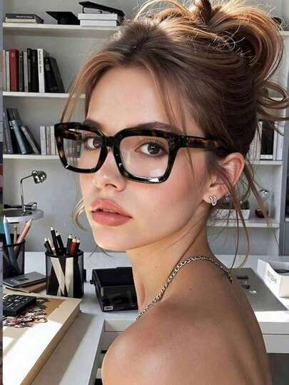 1 Pair Square Frame Glasses, Transparent Lenses, Suitable For Reading, Gaming, TV Watching, Computer & Phone Use, Unisex Eyewear Accessories, Women Glasses - Leopard - View 1
