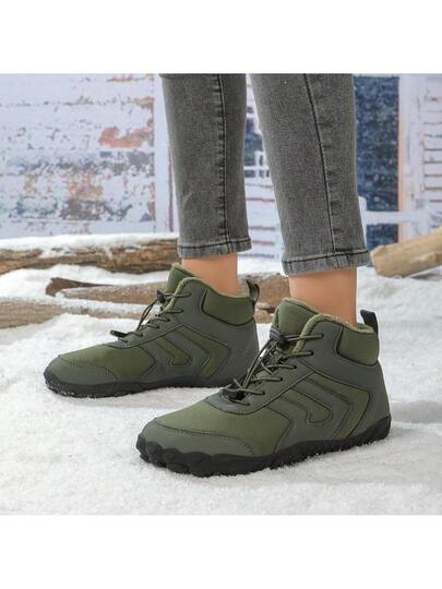 1 Pair Unisex Casual Warm Mid-Calf Adjustable Snow Boots For Outdoor Activities, Autumn/Winter - Army Green - View 1