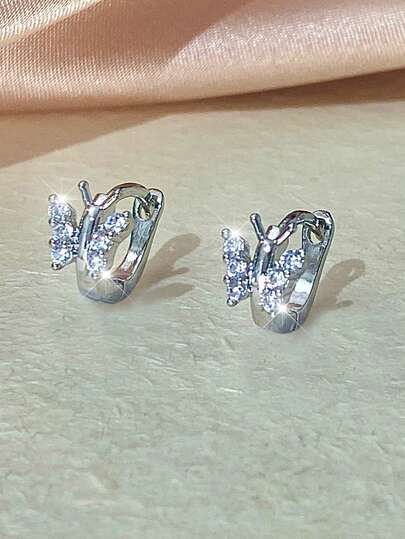 1 Pair Women's Earrings, Fashion Butterfly Hoop Earrings, Luxury Elegant Niche Stud Earrings, Minimalist Versatile Cubic Zirconia Earrings - Earrings - View 1