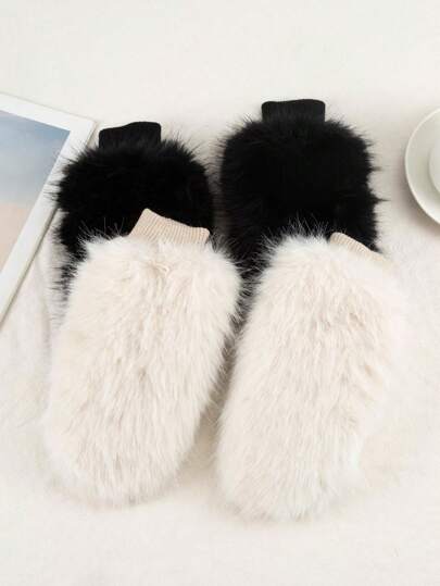 1 Pair Women's Polyester Blended Full Finger Warm Gloves, Plush Lining, Fluffy Trim, Fashion & Versatile For Outdoor, Date Night, Casual, Winter - Multicolor - View 1