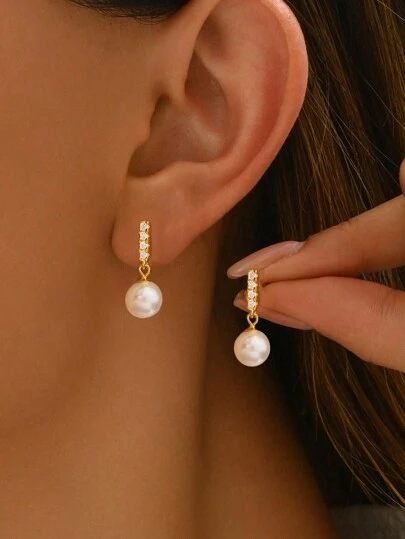 ESBERRY 1 Pair Elegant S925 Silver Faux Pearl Earrings, Exquisite Jewelry, Mother's Day, Wedding, Engagement, Bridal Jewelry, Holiday Gift - Gold - View 1