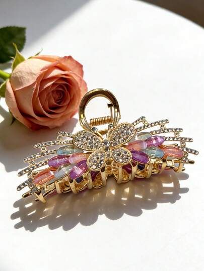 1 Pc Colorful Rhinestone Butterfly Wing Hair Claw, Photo-Ready Aesthetic Hairpin For Date & Brunch, Volume Boost Back Head Clip, Luxury Niche Exquisite Hair Accessory - Multicolor - View 1