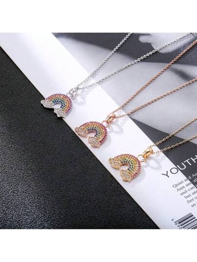 1 Pc Fashion Colorful Cubic  Rainbow Pendant Necklace For Women Collarbone Chain Party Gifts Wedding Jewelry - Rainbow - View 1
