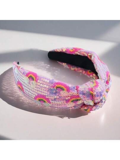 1 Pc Pink Rainbow Sequin Padded Knot Headband,Hairband,Hair Hoop - Pink - View 1