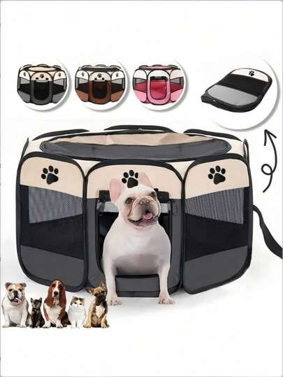 1 Pc Portable Foldable Pet Tent, Dog Kennel, Octagonal Fence, Puppy Shelter, Easy To Use, Simple To Operate Outdoors, Large Dog Cage, Cat Enclosure,Pet Cat/Dog Scratch-Proof Foldable Tent For Enclosure,Dog Bed,Dog Blanket,Christmas Gifts - Grey - View 1
