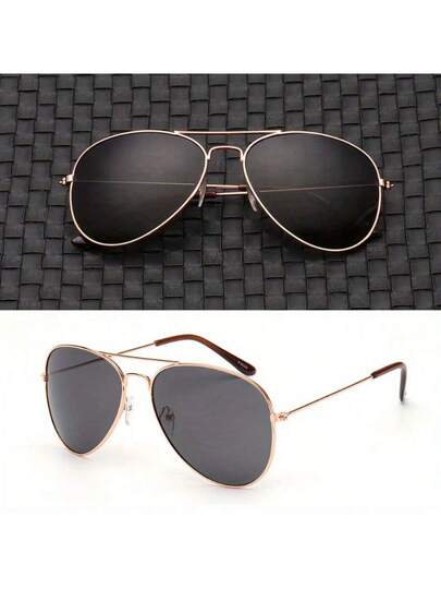 1 Pc Top Bar Aviator Fashion Glasses For Women Men Drivers Mirrored For Driving Summer Beach Travel - Gold - View 1