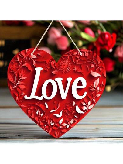 1 Piece, 2D Printed Wooden Heart-Shaped Logo Romantic Red Love Wall Art Decoration Tag, Suitable For Indoor Home Aesthetics Hanging Decoration, Suitable As A Valentine's Day Gift For Couples - Multicolor - View 1