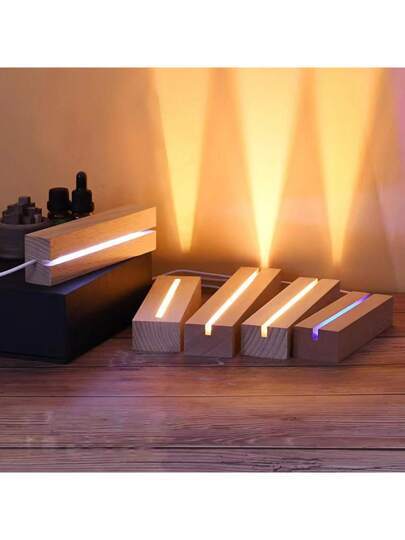 1 Piece 6-Inch Colorful Light Rectangular Display Base, Rectangular LED Light Display Base, Crystal Wooden Luminous Base, Suitable For Home Living Room Office Decoration Crystal Display Glass Art Base - Multicolor - View 1