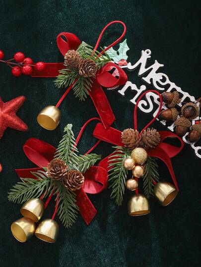 1 Piece Christmas Bow Tie With Metal Bells, Suitable For Trees, Gifts And Garlands - Plastic DIY Handcrafted Materials, Christmas Bell Decorations, Home Christmas Decorations, Outdoor Christmas Decorations, Holiday Tree Decorations, Holiday Bows Home Decor Room Decor Winter Christmas Decorations Home Christmas Gifts Christmas Decor - Multicolor - View 1