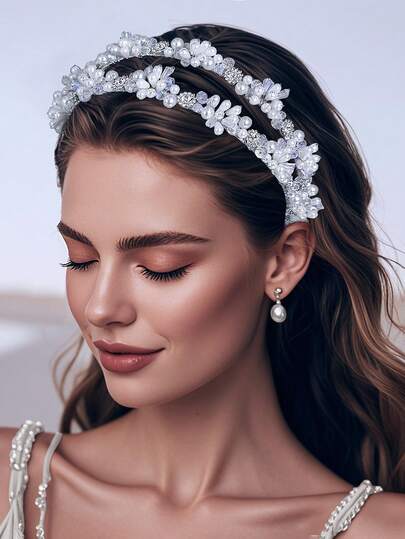 1 Piece Elegant Exquisite White Pearls Diamond Chain Headband Temperament Multi-Layer Long Tassel Fairy Hair Accessories Light Luxury Romantic Wedding Party Bridesmaid Gift Prom Princess Style Headdresses - Silver - View 1