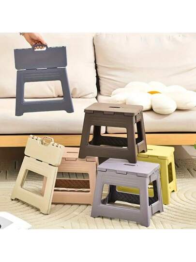 1 Piece, Lightweight And Non-Slip, Easy To Grip Design, Space-Saving, Modern Plastic Material, Portable Folding Ladder, Modern And Simple Style, Multi-Color Optional, Folding, Non-Slip Pedal, Stable Load-Bearing, Household Folding Ladder - White - View 1