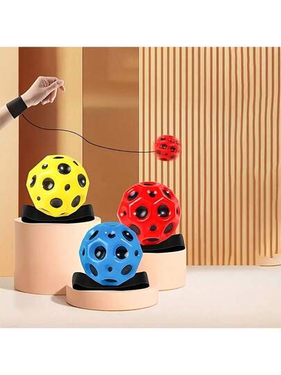 1-Piece Mini Wrist Finger Ball With Wrist Strap, Comfortable Grip Elastic Fitness Ball, Thermoplastic Polyester, Space And Moon Pattern, Perfect For Outdoor Fun And Sports - No Pushing, No Electricity Required - Multicolor - View 1