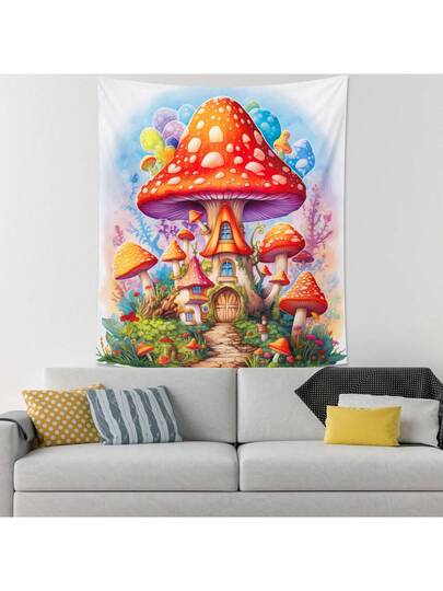 1 Piece Mushroom Castle Plants And Florals Colorful Tapestry Fairy Tale Polyester 100X150Cm/130X150Cm/150X200Cm Decoration Tapestry With Eight Traceless Stickers For Living Room, Bedroom, Dormitory Decoration And Gift Giving - Multicolor - View 1