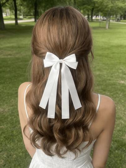 1 Piece Of Elegant And Lovely Women's White Bow Hair Accessory, Suitable For Daily Wear, Travel, And Gatherings. Small Fresh Style, Valentine's Day Gift, Four Seasons Atmosphere Hair Accessories, Ribbon Bow, Ramadan, Mother's Day - White - View 1
