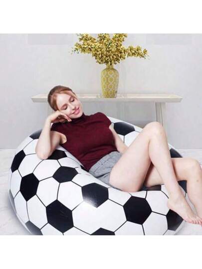 1 Piece Of Inflatable Armchair, Comfortable And Practical Sofa To Rest In The Shape Of A Soccer Ball - Black and White - View 1