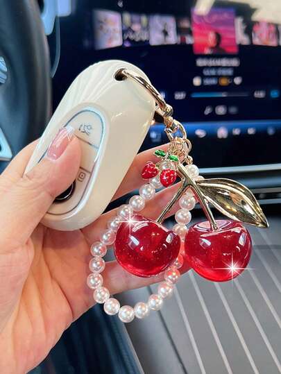 1 Piece Of Light Luxury Style Cherry Bag Charm Key Chain - Car Cherry Accessories Key Chain, Christmas Gift For Women, Valentine's Day Gift - Gold - View 1