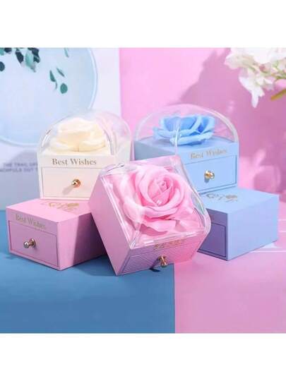 1-Piece Valentine's Day Jewelry Box Single-Layer Soap Flower Ring, Earring, Pendant Necklace Box Engagement Proposal Pendant Bracelet Jewelry Box Empty Box Birthday Gift Mother's Day Graduation Season Gift Jewelry Box Set - Multicolor - View 1