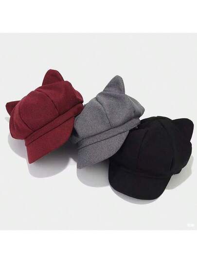 1 Piece Women's Cute Cat Ear Beret, British Retro Woolen Flat Cap, Newsboy Hat - Fashionable Elegant Casual Cute Style, Exquisiten Cat Ear Details, Soft And Warm Blended Wool Material, Structured Brim And Elastic Inner Strap, Easy To Fold And Store, Windproof And Warm, Multiple Colors Available, Perfect Winter And Autumn, Suitable For Daily Wear - Multicolor - View 1