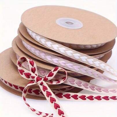 1 Roll 10mm Colorful Woven Heart-Shaped Trim - Elegant Floral Pattern, Paired With White And Pink Hearts, Durable Polyester Fabric, Suitable For Gift Wrapping, Party Decoration, Gift Packaging Accessories - Multicolor - View 11