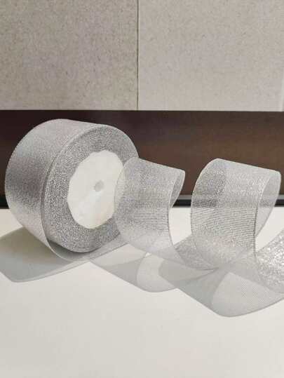 1 Roll 4cm Width Ribbon With Bowknot For Gift Wrapping, Silver Glitter Ribbon - Silver - View 1