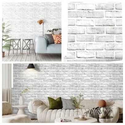 1 Roll Of White Brick Pattern Wallpaper, Ready To Peel And Paste Wallpaper Tiles, White And Gray Removable Wallpaper, Ready To Peel And Paste Self-Adhesive Imitation Tiles, Suitable For Bedroom Splash-Proof Board, Laundry Room Decoration Wall, Home Decoration Paper - White - View 1