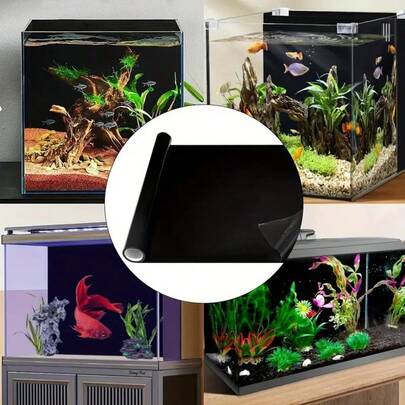 1 Roll - Pure Black Glossy Aquarium Sticker, Fish Tank Background - Removable, Trimmable, No Residue - Vinyl Material, Self-Adhesive Easy Installation - Suitable For Aquarium Decor, Terrarium Landscaping, Enhancing Fish Color Display - Improving Natural Aesthetics, Helping Fish Color Vibrancy - Black - View 1