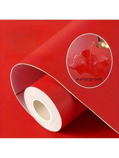 1 Roll Red Of Solid Color Self-Adhesive Wallpaper15.7inX196.8/118.1/39.3in PVC Matte Frosted Surface Thickened Waterproof Easy To Clean Detachable Sticker For Bedroom Living Room Hotel Wall Home Decoration Wall Kitchen Countertop Dish Furniture Renovation Sticker DIY Easy To Install Easy To Remove And Paste, Renovation Stickers Peel Wall Panels, Wall Paper, Wallpapers, Spring Decoration Items Refresh Your Home, Rama Decoration Stickers Gifts Birthday Graduation - Red - View 1