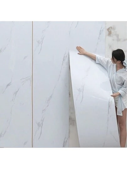 1 Roll Thick Marble Pattern Waterproof Self-Adhesive Wallpaper, Modern Minimalist White Marble Texture, Suitable For Sofa, TV Background, Dining Room, Bedroom, Kitchen Countertop And More - White - View 10