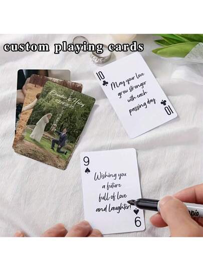 1 Set/54 Pieces, Customized Playing Cards, Customized Text And Pictures, 5 Photos Can Be Customized, Customized Couple Photo And Family Photo Playing Cards, Table Game Cards, Wedding Souvenirs, Anniversary Souvenirs, Wedding Playing Cards, Anniversary Gifts, Anniversary Gifts, Valentine's Day, Mother's Day, Birthday, Father's Day, Graduation Ceremony, Wedding. - Multicolor - View 5