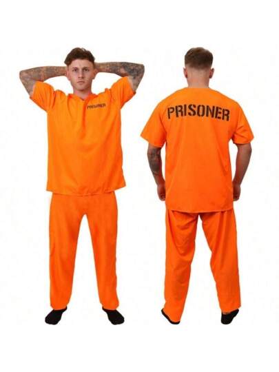 1 Set Adult Cosplay Costume, Prison Convict Outfit Halloween - Orange - View 1