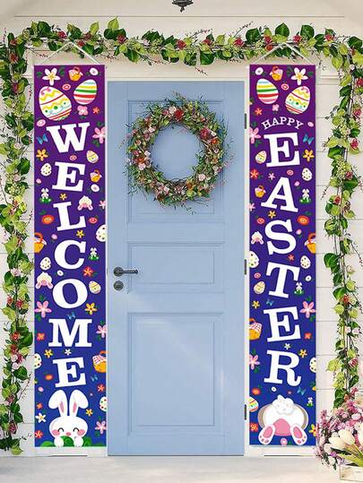 1 Set/Easter Couplets Easter-Themed Couplets A Pair Of Charming Easter-Themed Fabric Couplets Adorned With Rabbits, Colorful Eggs, And Bunny-Ear Ribbon Motifs. Perfect For Party Decorations, Garden Accents, Photo Backdrop Props, And Occasions Like Weddings And Bridal Showers. - Multicolor - View 1