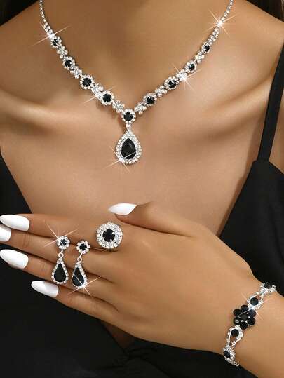 1 Set Elegant Multicolor Gemstone Luxury Earrings, Bracelet, Ring, Necklace 4pcs Jewelry Set, Suitable For Women To Wear To Engagement, Wedding, Gala, Christmas Eve, Halloween, Christmas Party - Multicolor - View 1
