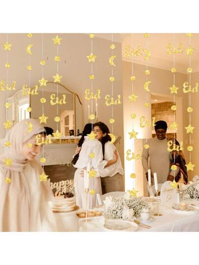 1 Set Gold Laser EID Crescent Moon Paper Hanging Garland, Suitable For Ramadan, Eid Al-Fitr Party, Festival Celebration, Home Ramadan Kareem, Ramadan Mubarak, Eid Mubarak Themed Party Decoration - Multicolor - View 5