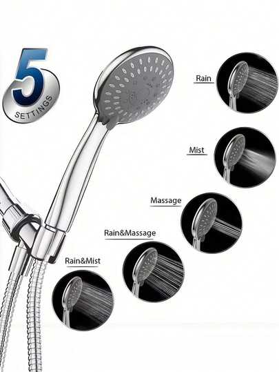 1 Set Handheld Adjustable High Pressure Shower Head With Bracket & Hose, Bathroom Shower Faucet, Bathroom Hardware, Bathroom Accessories, Enjoy Luxurious Bathing Experience - Square - View 5